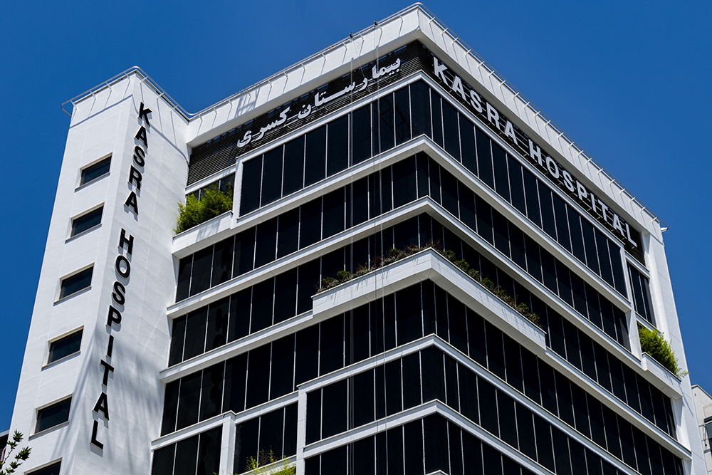 Kasra Hospital Owner: Kasra Hospital Board of Directors Architect: Taheri Location: Nelson Mandela Blvd., Tehran Year of construction: 2024 Aluminum glass facade area: 1,885 m² Cement board facade area: 608 m²